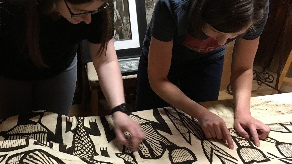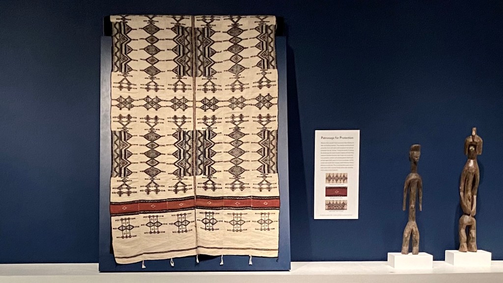 The Gregg accepted 41 textiles, carvings, and other items, including the Senufu mud cloth at left. Our Bundu masks are on display and two of our textiles are part of the current exhibit Material Messages: The Tales That Textiles Tell.